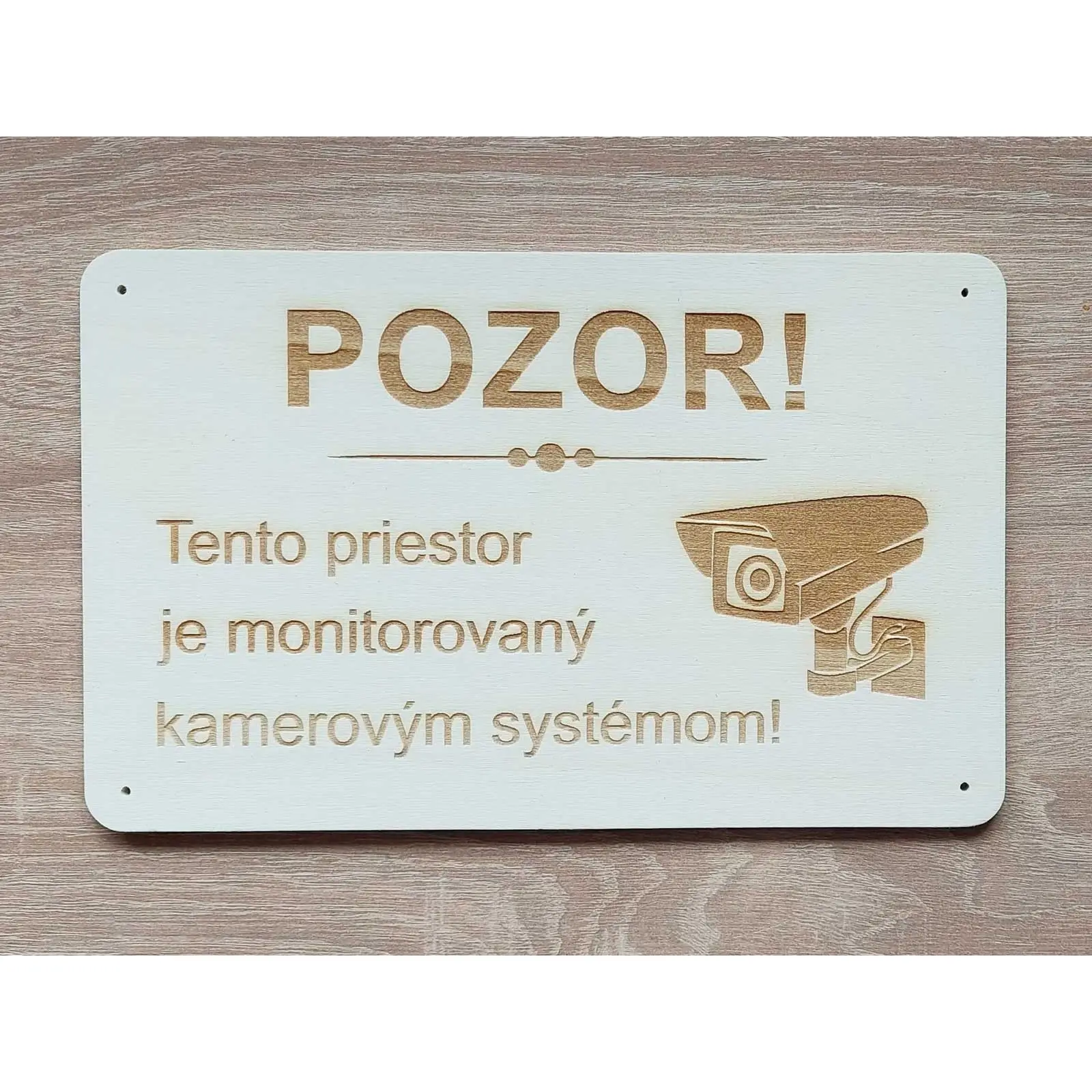 Táto drevená tabuľka s rozmermi 27x17 cm je praktickým a zároveň estetickým riešením na označenie priestorov, ktoré sú monitorované kamerovým systémom.