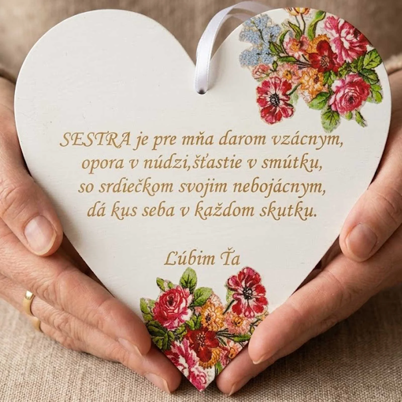 Práve preto vzniklo naše darčekové srdiečko s laserovaným textom, ktoré nesie silný odkaz: „Sestra je pre mňa darom...“