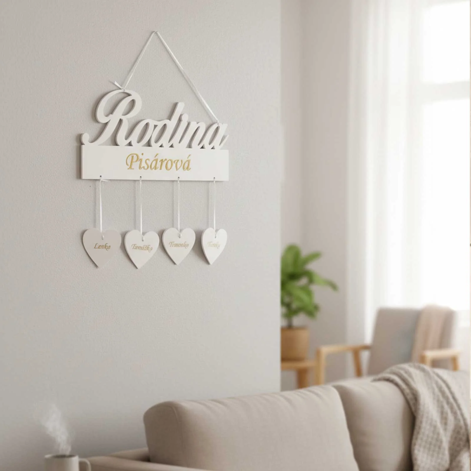 Táto dekorácia nie je len kusom opracovanej preglejky. Je to symbol jednoty. Hlavná tabuľka s nápisom "RODINA" slúži ako pevný základ, na ktorom doslova visia mená tých najdôležitejších osôb vo vašom živote.