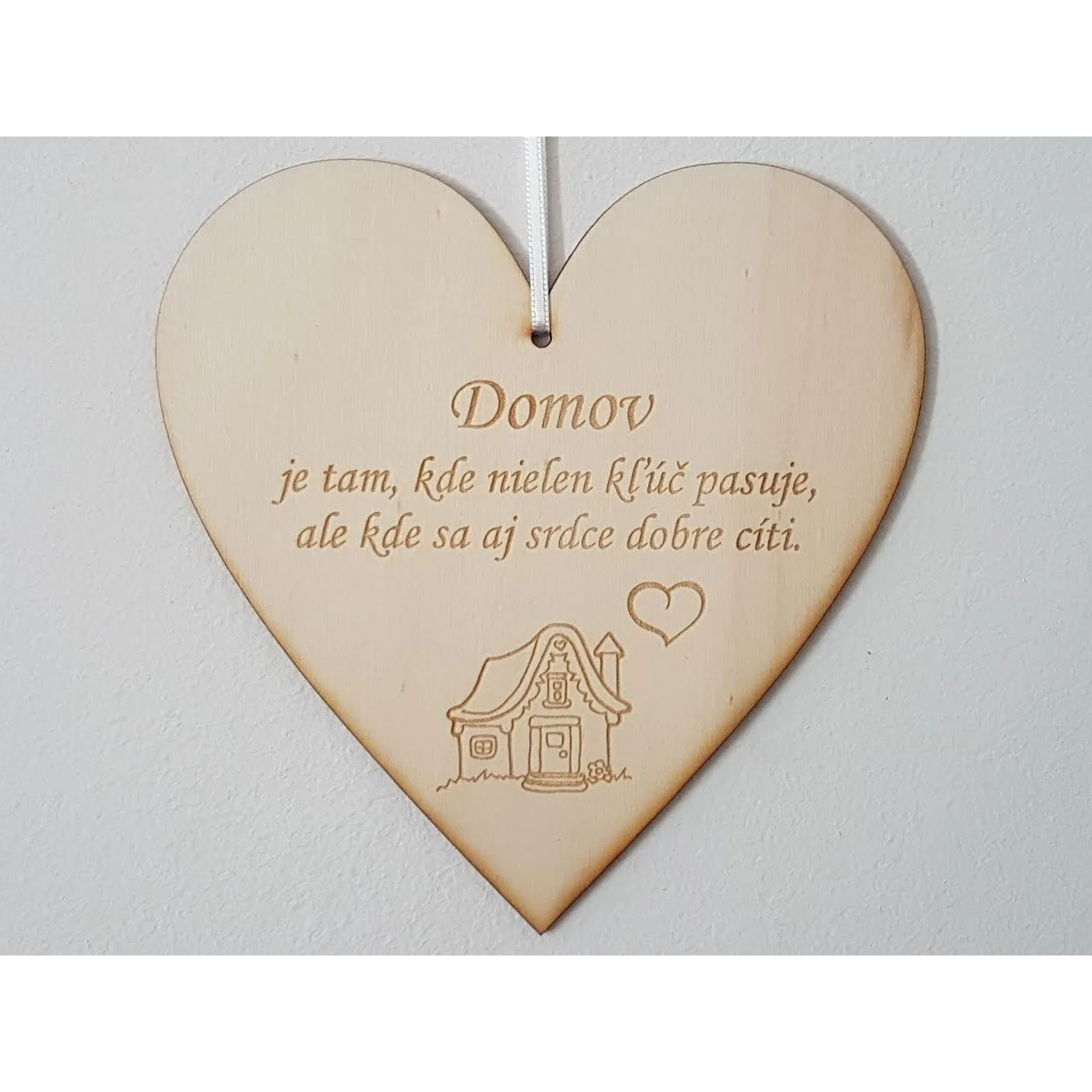 Ponúkam tabuľku srdiečko s laserovaným textom: Domov je tam, ...