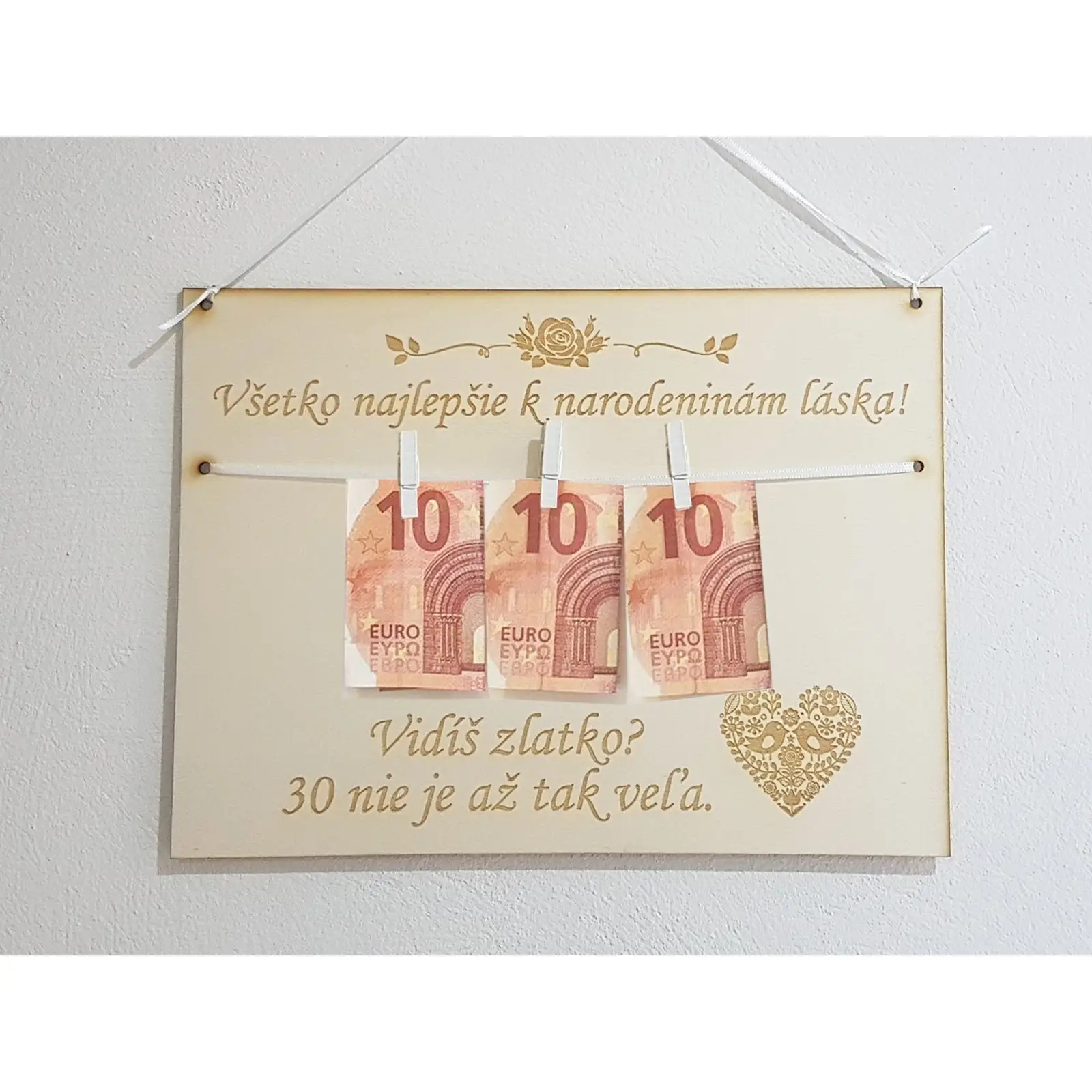 Výborná voľba! Drevená tabuľka je skvelým a personalizovateľným darčekom k 30. narodeninám.