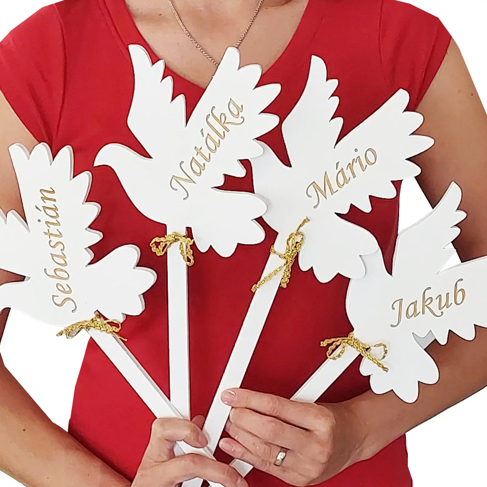 Jedným z nádherných a symbolických prvkov výzdoby, ktorý vnesie do kostola pokoj a eleganciu, sú biele holubice s menami detí.