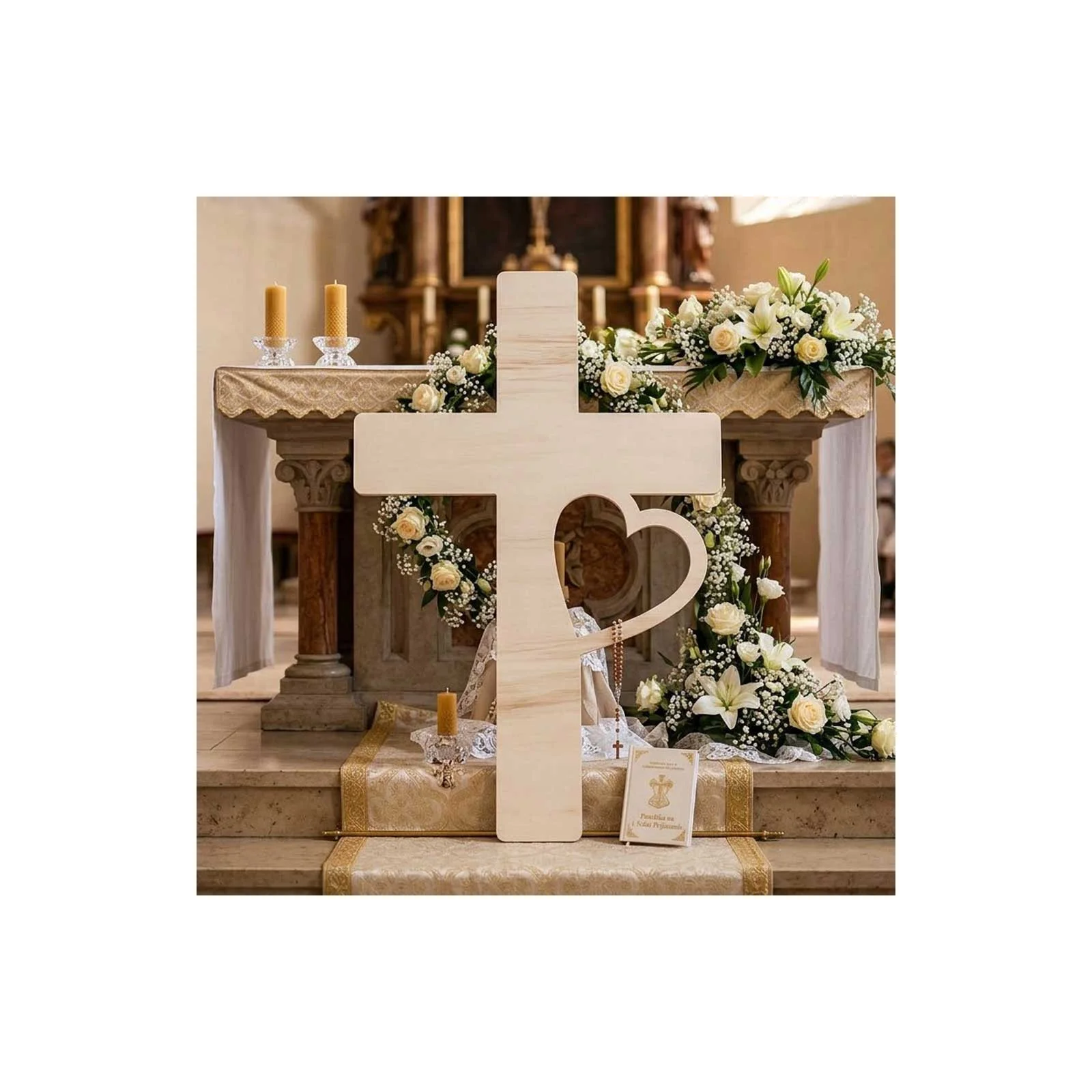 Kríž je univerzálnym symbolom viery a obety, no v kombinácii so srdcom získava nový rozmer – rozmer nekonečnej lásky a milosrdenstva. Pri výške 73 cm je tento kríž dostatočne dominantný na to, aby sa stal centrálnym bodom výzdoby pri: