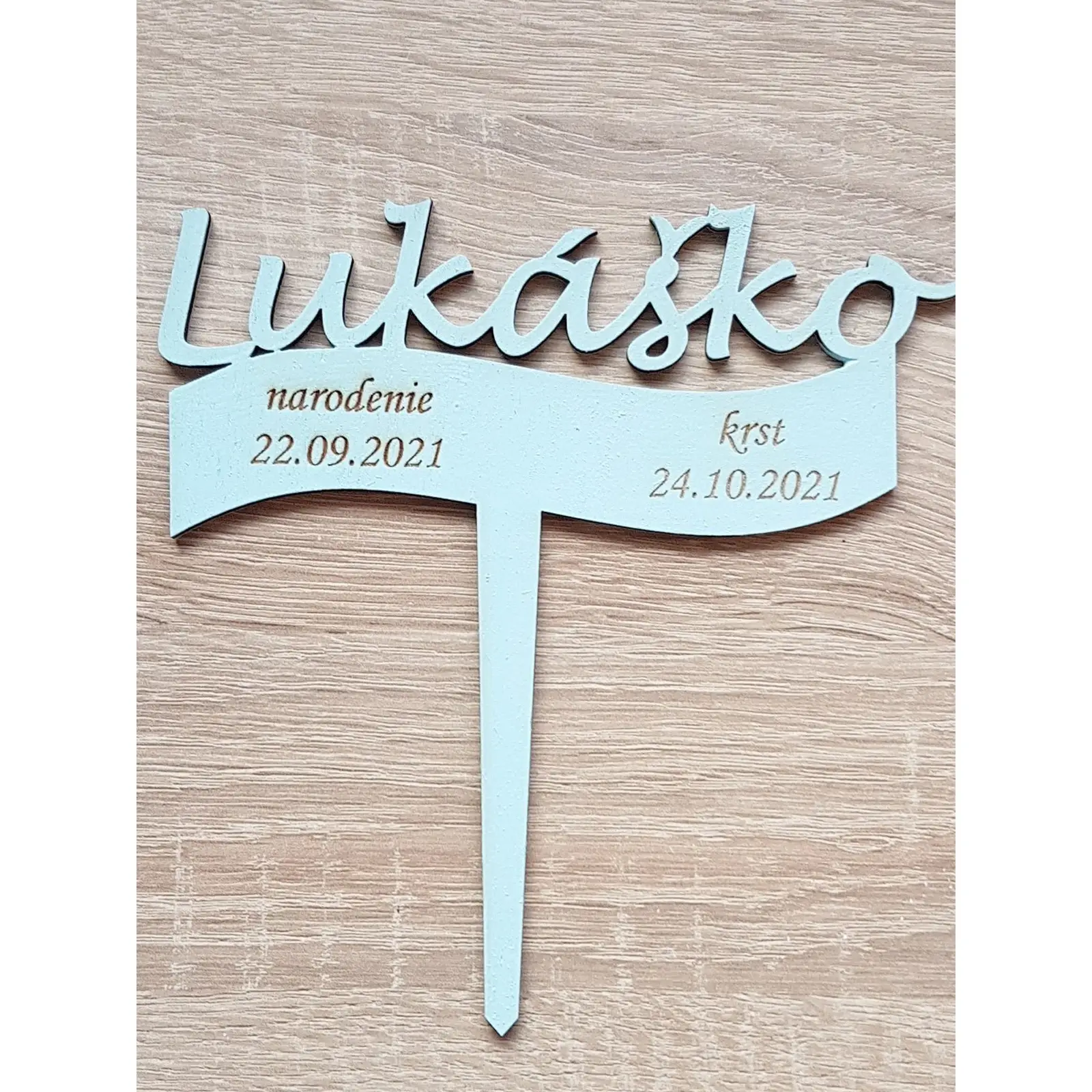 Drevený zapich na mieru s menom Lukáško šírka 15cm maľovaný - modrá