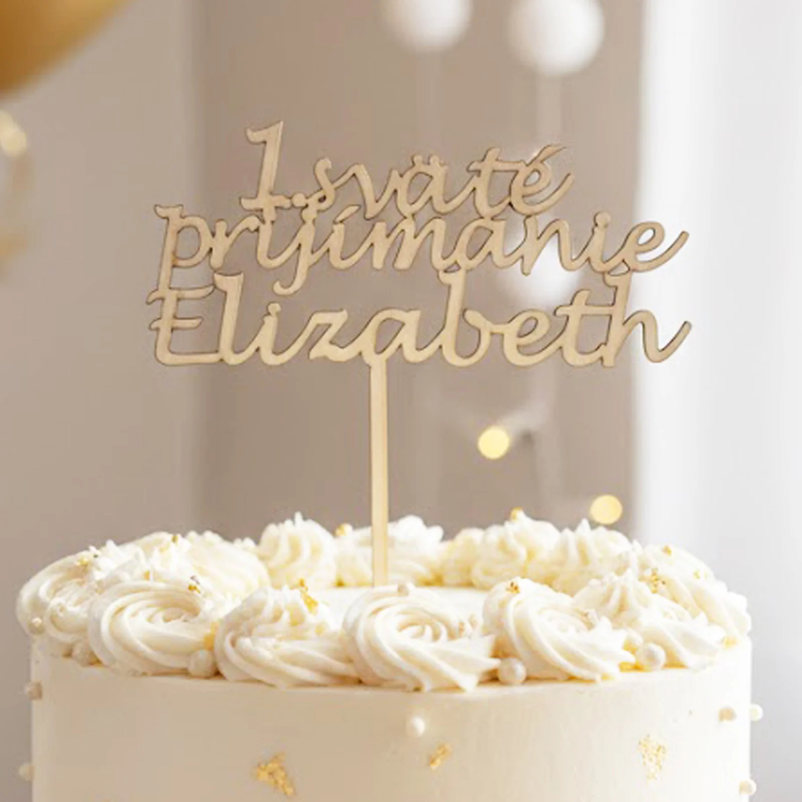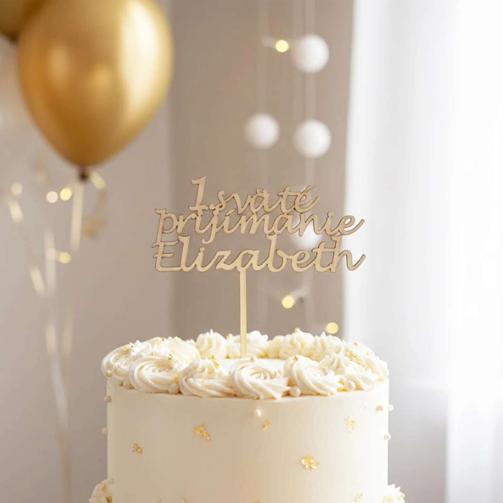 Drevené zápichy na 1. sväté prijímanie s menom – dokonalá dekorácia na tortu
