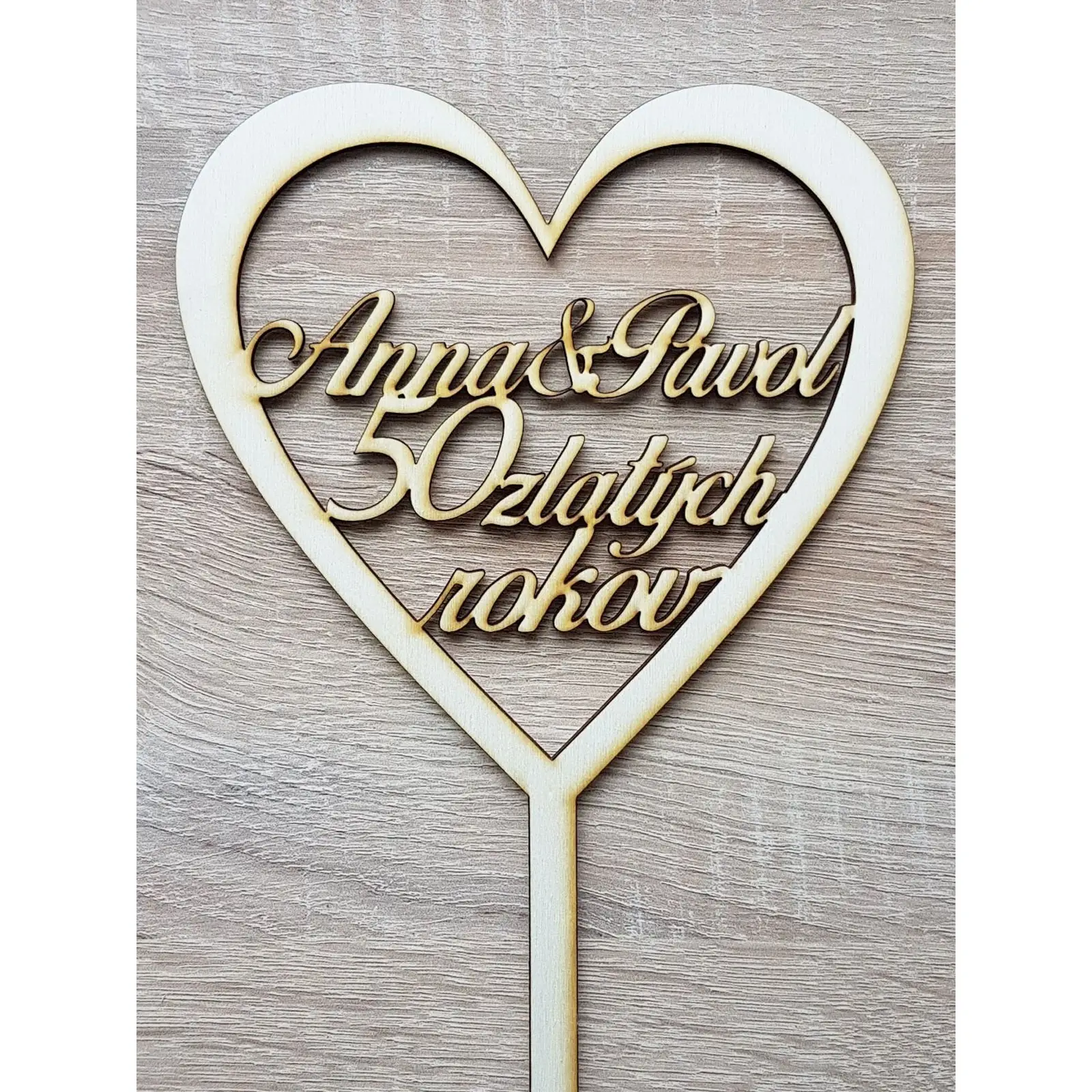 Zlatá bodka za päťdesiatimi rokmi lásky: Drevený zápich na tortu ako symbol výnimočného jubilea