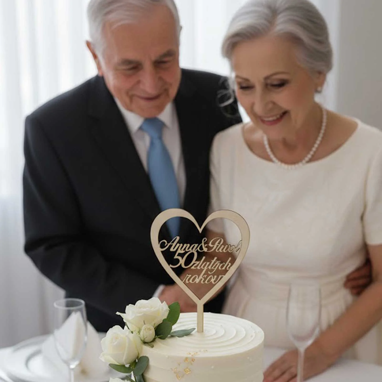 Päťdesiat rokov spoločného života je míľnikom, ktorý si zaslúži výnimočnú oslavu. Zlatá svadba je symbolom trvalej lásky, vzájomného porozumenia a nezlomného puta, ktoré pretrvalo skúšky času. A aký je lepší spôsob, ako túto výnimočnú udalosť osláviť, ako s tortou, ktorá je korunovaná elegantným a jedinečným zápichom?