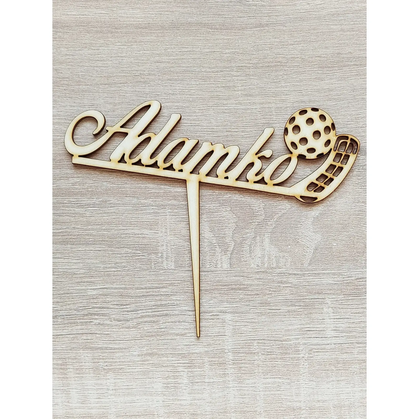 Drevený zápich na tortu florbal šírka 15cm.