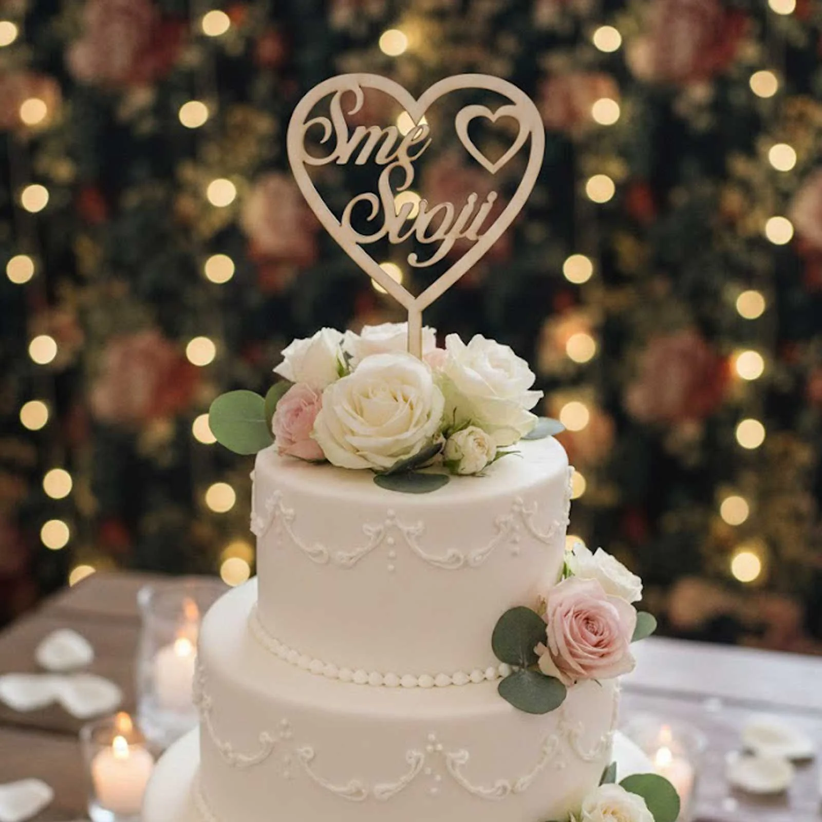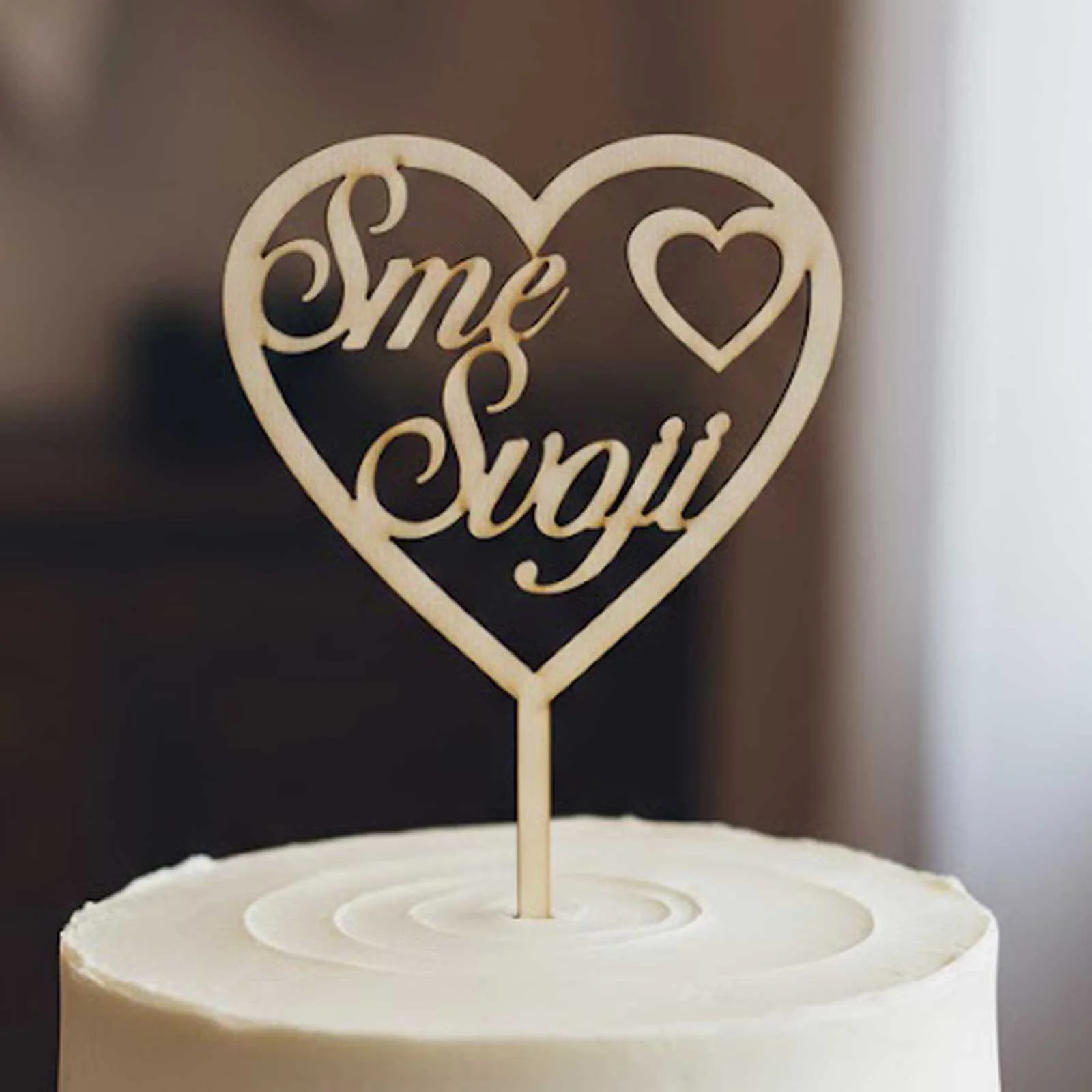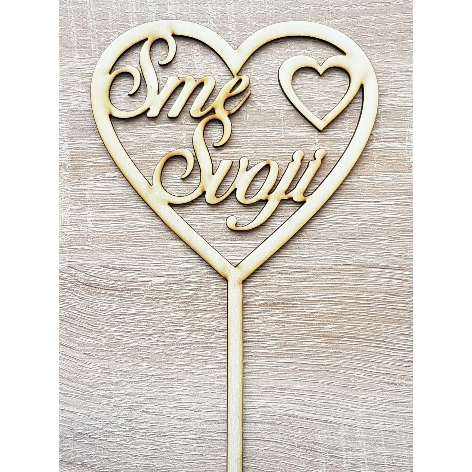Svadobný deň je jedinečný a každý detail by mal odrážať lásku a osobnosť novomanželov. Drevený zápich na tortu s nápisom "Sme svoji" v tvare srdiečka je dokonalým doplnkom, ktorý dodá vašej svadobnej torte romantický a osobitý nádych.
