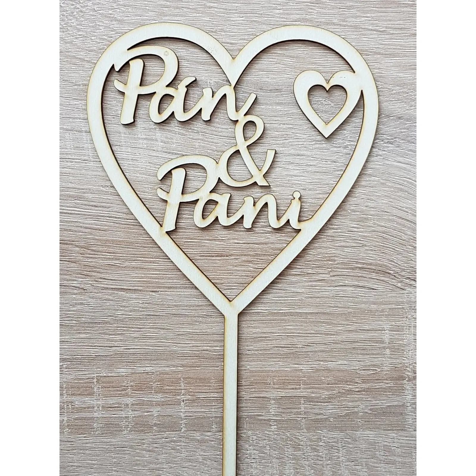 Svadobná torta je jedným z vrcholov svadobného dňa a zaslúži si výnimočnú pozornosť. Drevený zápich s nápisom „Pán a Pani“ je elegantným a štýlovým doplnkom, ktorý dodá vašej torte osobitý charakter.